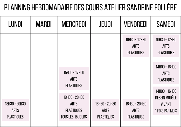 - Cours d’arts plastiques : durée 2h00, inscription possible tout au long de l’année.